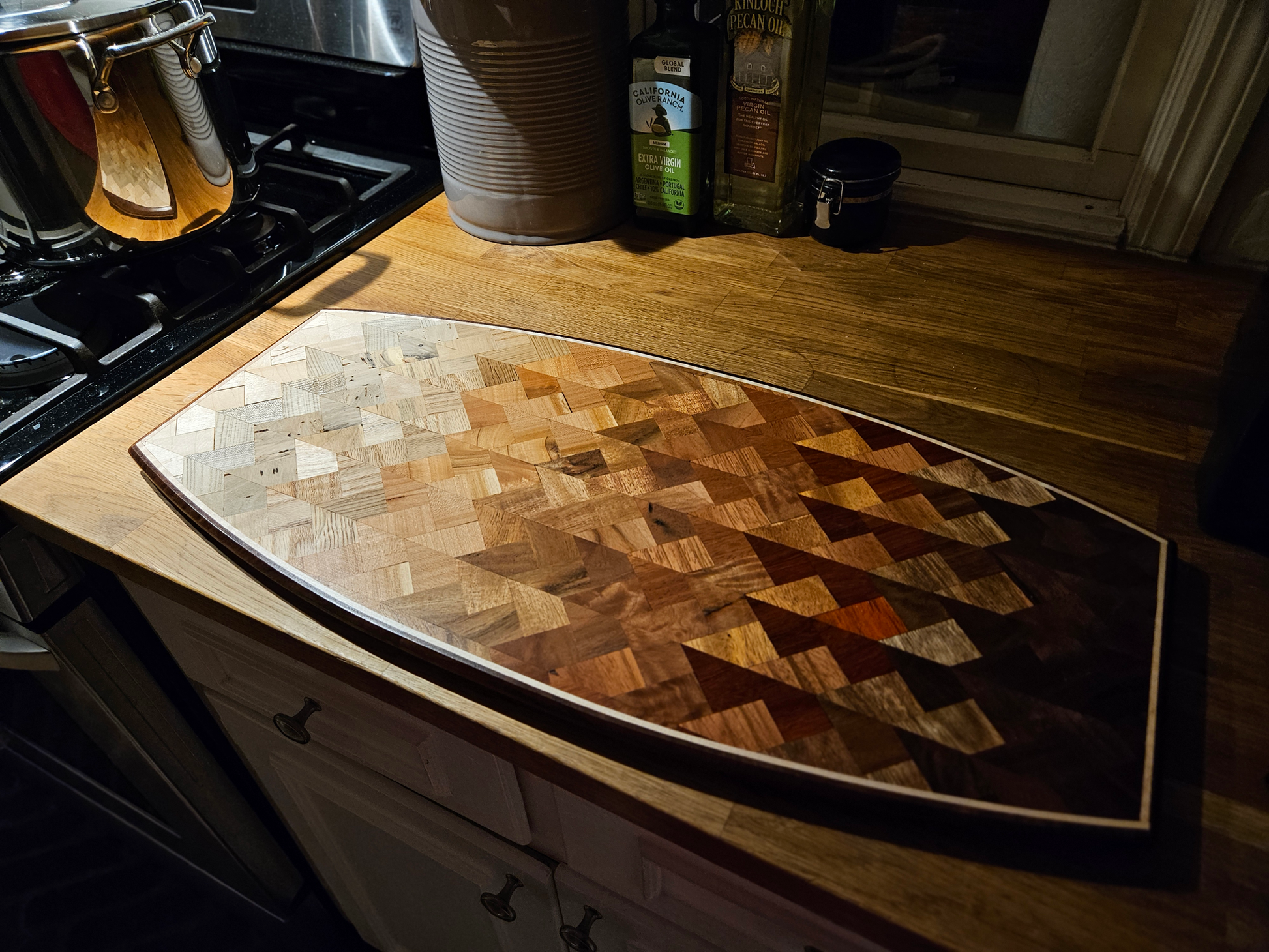 Each board has a food-safe, cured-lacquer finish. This helps protect against liquids and brings out the luster in the wood.
