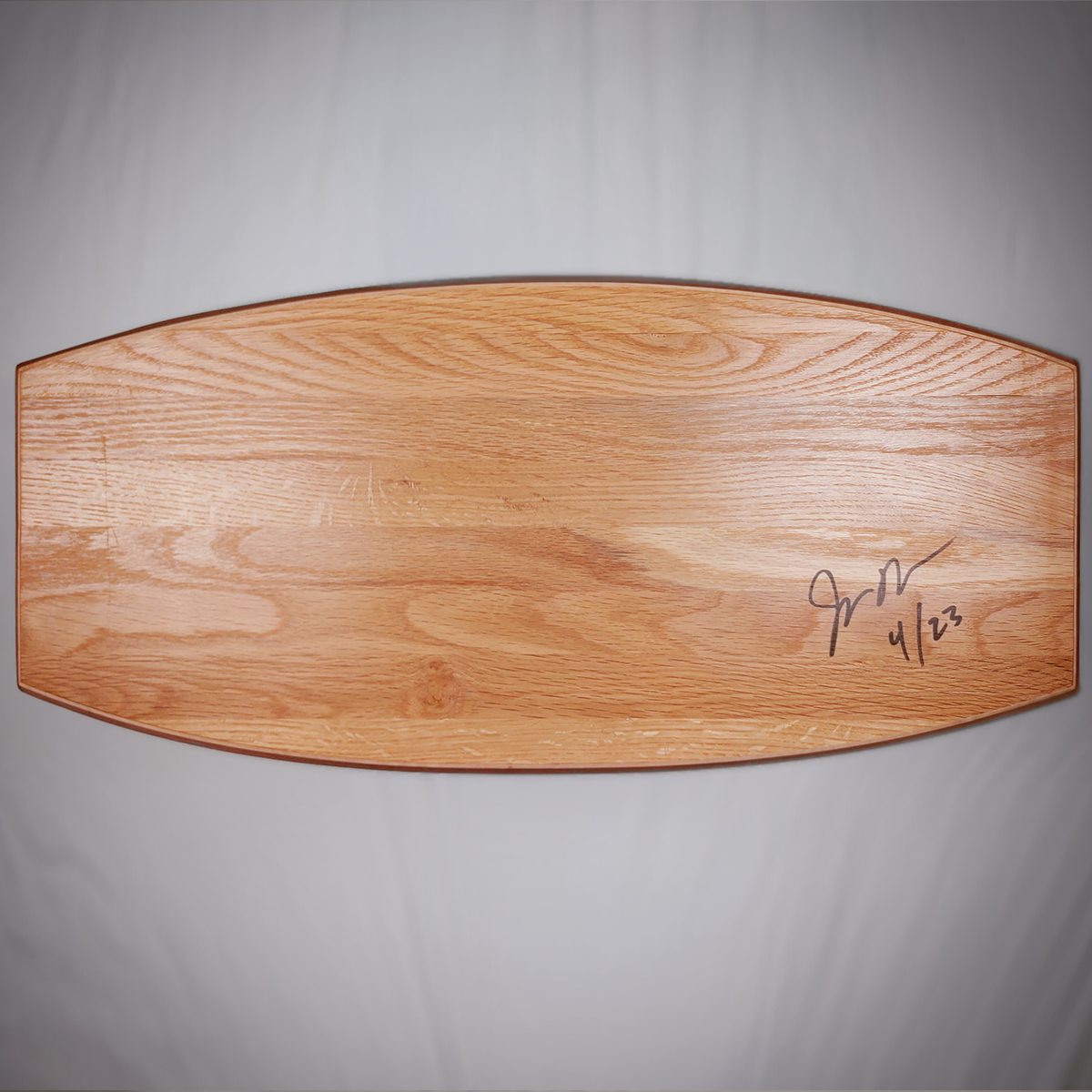 Each board has a food-safe, cured-lacquer finish. This helps protect against liquids and brings out the luster in the wood.