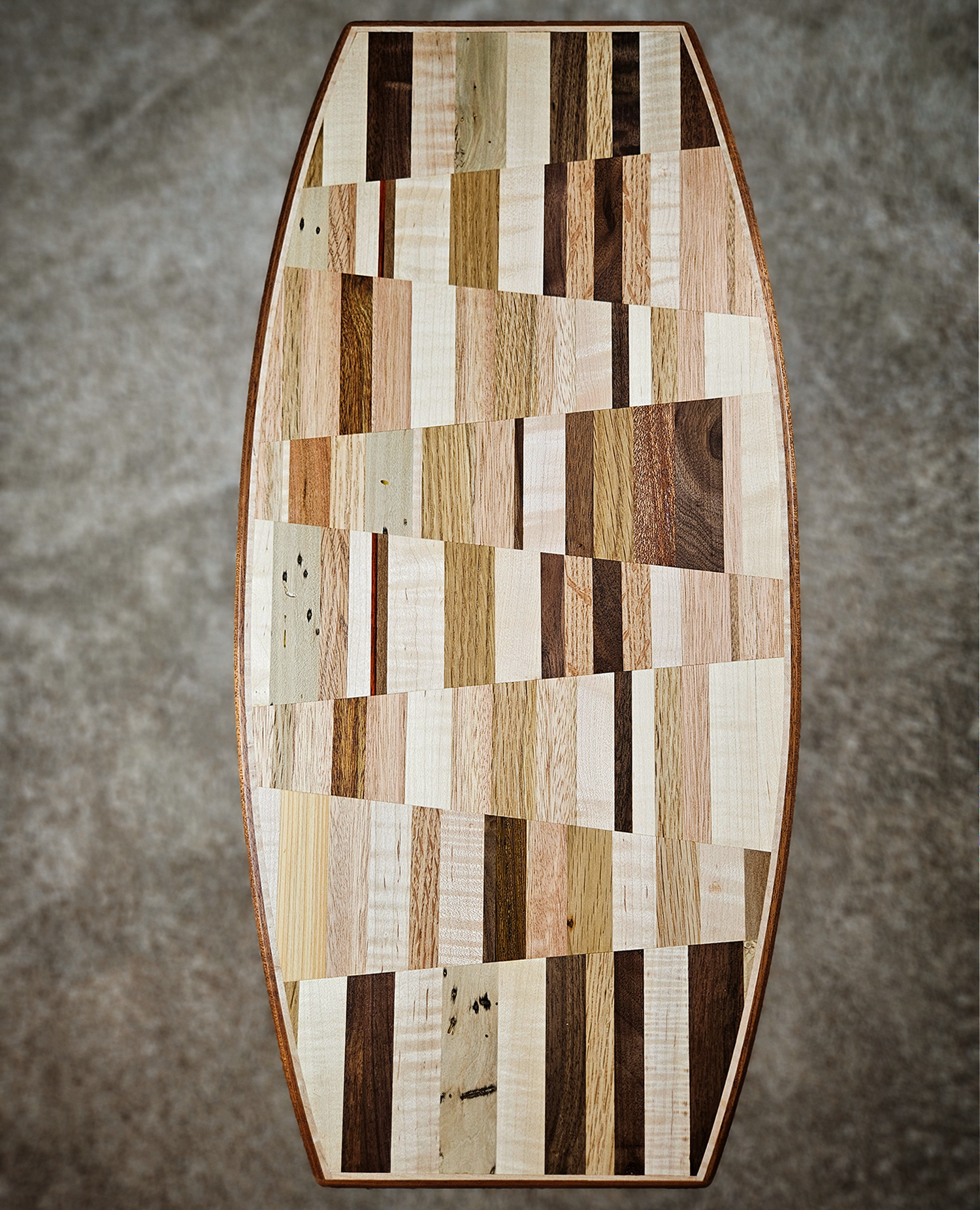 In the cutting board / charcuterie board space there's a term for a piece made with scrap pieces. Lovingly referred to as a "Chaos Board", that's often what they look like. Very little rhyme or reason to the design beyond it all being made out of wood and that wood was without a dedicated purpose.